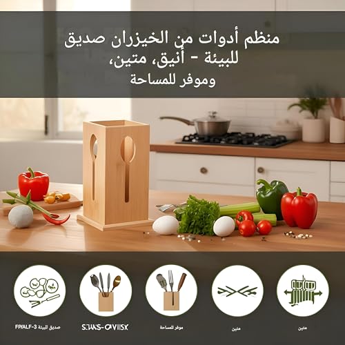 - مصنوع من الخيزران المتين، يوفر حامل أدوات المائدة هذا قوة طبيعية وجاذبية صديقة للبيئة مع الحفاظ على الأواني في مكانها بشكل أنيق.