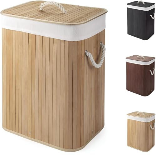 Generic - سلة غسيل صديقة للبيئة - سلة غسيل متينة من الخيزران قابلة للطي مع غطاء، سعة 75 لتر مقاس 60 × 40 سم لحياة مستدامة وتخزين فعال.