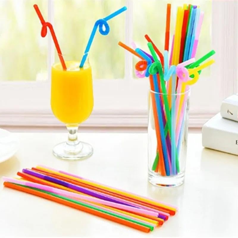 Spaceshoop - شفاطات شرب مرنة ملونة صديقة للبيئة للاستعمال مرة واحدة بقطر 5.8 ملم وطول 26 سم، عبوة كبيرة من 200 قطعة