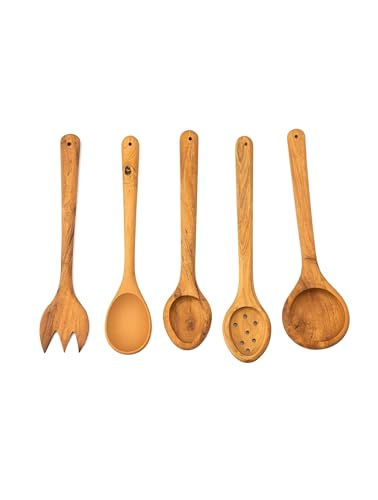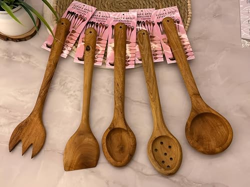 Generic - مجموعة مطبخ صديقة للبيئة - 5 قطع من ادوات خشبية اكاسيا مع مشقوقة ومعكرونة وملعقة سباتولا لمهام الطبخ المستدامة