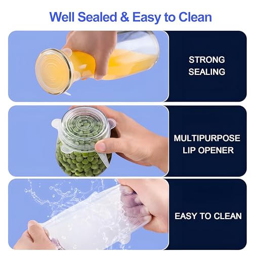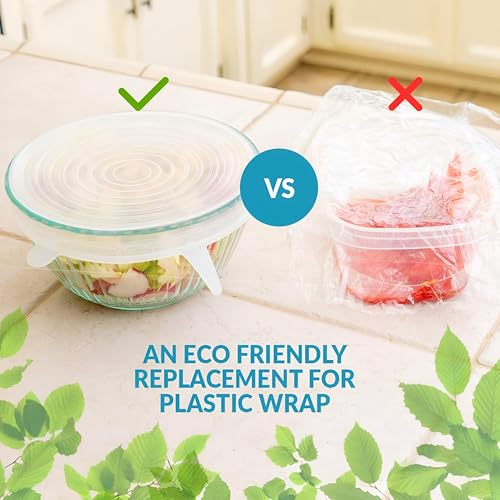- تأتي هذه الأغطية بستة أحجام مختلفة، مما يسمح لها بملاءمة مجموعة متنوعة من الحاويات والأوعية والبرطمانات وحتى الفواكه غير المنتظمة الشكل مثل البطيخ والشمام، مما يجعل تخزين الطعام متعدد الاستخدامات ومريح.