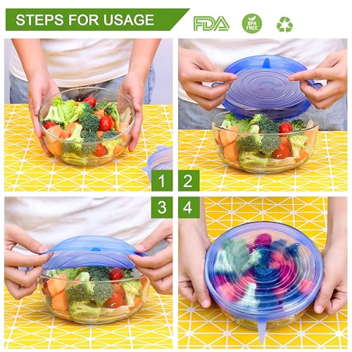 Generic - أغطية سيليكون صديقة للبيئة متعددة الاستخدامات قابلة لإعادة الاستخدام لتخزين الطعام (6 قطع من الألوان المعروضة)