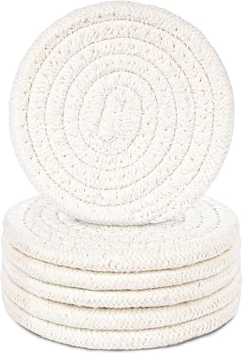 - 【تصميم حرفي يدوي】كل قاعدة أكواب مصنوعة يدويًا بشكل فردي، مما ينتج عنه ملمس فريد ونمط دائري يضيف لمسة فنية راقية إلى الطاولات، مما يجعلها إكسسوارًا أنيقًا يعزز عرض المشروبات، وينسجم مع الديكور الحديث أو الريفي أو الكلاسيكي، ويخلق جوًا جذابًا لاستراحات القهوة أو تناول الطعام غير الرسمي