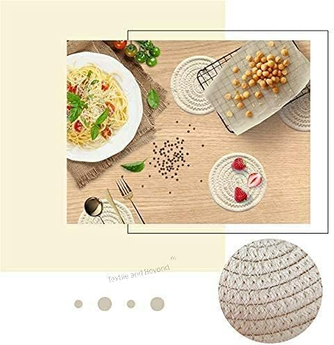 Generic - مجموعة قواعد اكواب مستديرة من الجوت صديقة للبيئة بتصميم منسوج يدويا ورف منظم للاكواب والمشروبات الساخنة والباردة لحماية الطاولة للمنزل والمكتب