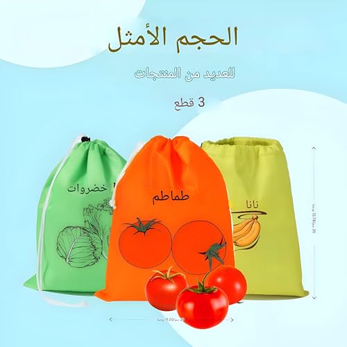 - تتميز هذه الأكياس باستخدامات متعددة، مما يجعلها مثالية لتخزين مجموعة متنوعة من المنتجات، من الخضروات الورقية الحساسة مثل الخس إلى الخضروات الجذرية القوية والفلفل الملون. مناسبة بشكل خاص للحفاظ على الموز والخس طازجين، مما يجعلها إضافة أساسية لمطبخك لتحسين حفظ المنتجات وتقليل الهدر بشكل كبير. الأكياس سهلة التنظيف وقابلة لإعادة الاستخدام، مما يعزز الممارسات الصديقة للبيئة في مطبخك.