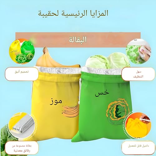 Generic - أكياس قابلة لإعادة الاستخدام مبطنة بالألومنيوم للحفاظ على النضارة، خيار مستدام للفواكه والخضروات والتخزين الصديق للبيئة وإطالة عمر الطماطم والموز والخس