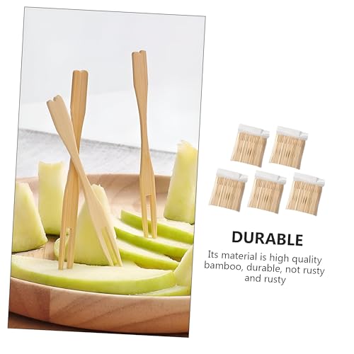 Generic - ادوات مائدة صديقة للبيئة - 100 قطعة من شوك تقديم الخيزران 2 في 1 للوجبات الخفيفة والفواكه، مثالية لاي حفلة او تجمع (200 قطعة)