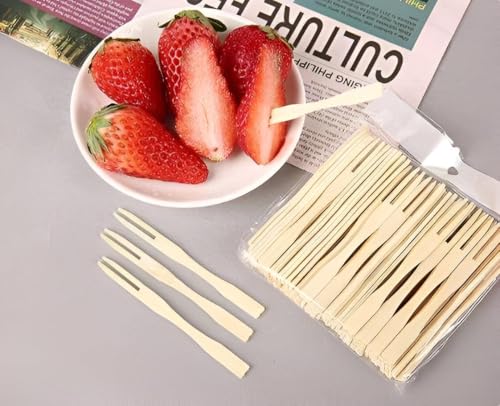 Generic - أدوات تناول الطعام صديقة للبيئة - مجموعة شوك خشبية قابلة للتحلل البيولوجي للوجبات الخفيفة والكوكتيل، مثالية للحفلات والمناسبات الصديقة للبيئة، 100 قطعة