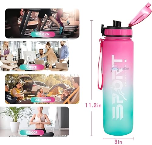 - زجاجة شرب خالية من البيسفينول ايه سعة 1000 مل، زجاجة مانعة للتسرب لصالة الألعاب الرياضية، زجاجة مياه غير قابلة للكسر، مثالية للمكتب والرياضة والمدرسة وصالة الألعاب الرياضية واليوغا