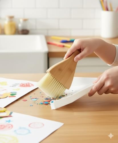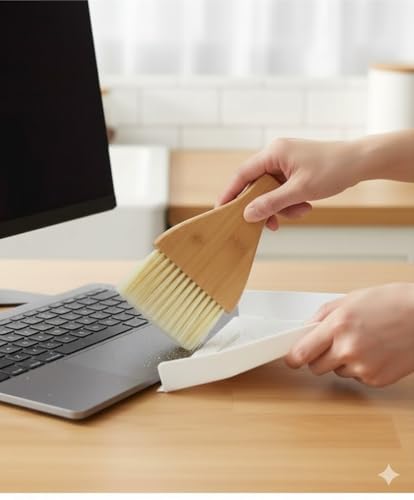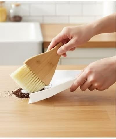 Generic - مجموعة فرشاة يدوية وجاروف من خشب الخيزران صديقة للبيئة متعددة الاغراض مثالية لمحطة العمل ومكتب العمل والمنزل والمطبخ وطاولة الطعام او كهدية *شعيرات ناعمة ولطيفة تدوم طويلا*