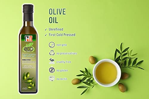 Eco Healthy - زيت الزيتون من إيكو هيلثي، سائل عضوي بنكهة الزيتون، منخفض الحموضة أقل من 0.5%، سعة 250 مل