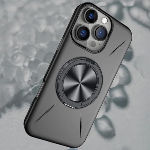 ecosystem - جراب مغناطيسي صديق للبيئة لموبايل ايفون 16 برو ماكس، جراب نحيف غير قابل للانزلاق مع حامل حلقي دوار من البولي يوريثين الحراري الناعم يدعم الشاحن اللاسلكي وحامل حلقي 360 درجة (اسود)