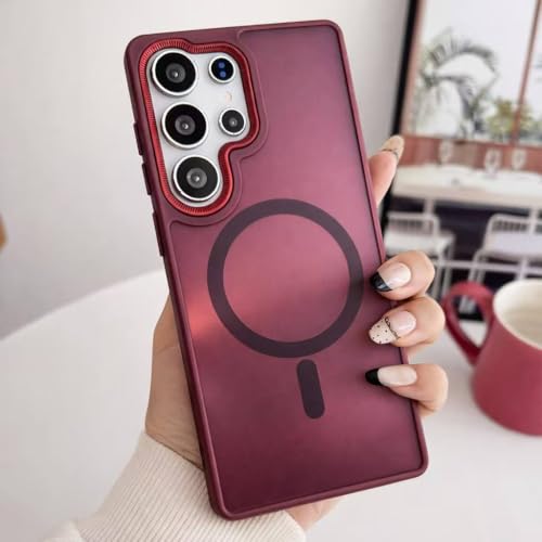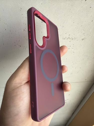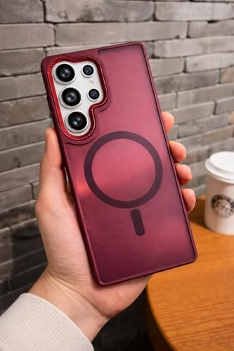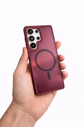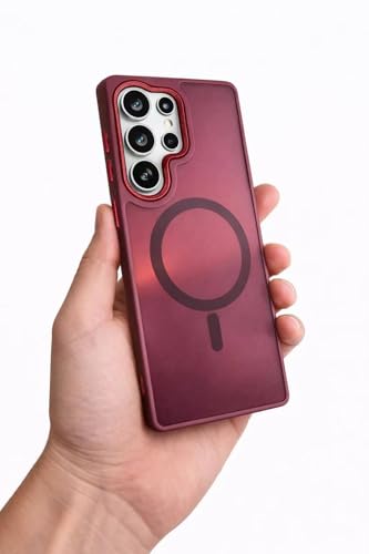ecosystem - جراب مغناطيسي من ايكو لموبايل سامسونج جالاكسي S25 الترا، حماية كاملة للكاميرا مع العدسات، متوافق مع الشحن اللاسلكي، جراب شفاف مضاد للصدمات لموبايل سامسونج S25 الترا (احمر شفاف)