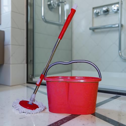 eco PLAST - مجموعة مساحة موب دوارة كلاسيكية وجردل بمقبض ومصفاة من الفولاذ المقاوم للصدأ من ايكو بلاست، رأس دوار 360 درجة، متعددة الألوان