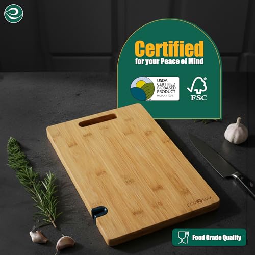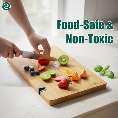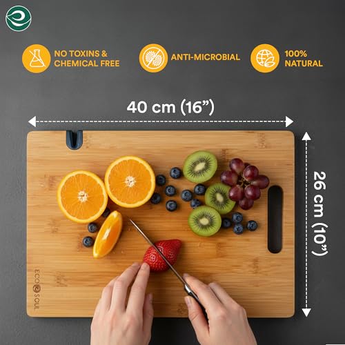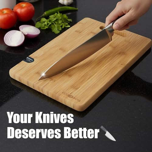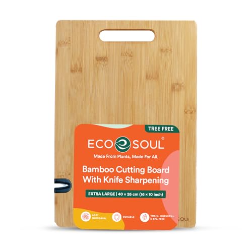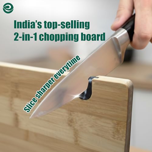 ECO SOUL - لوح تقطيع من البامبو مع أداة شحذ سكاكين | لوح تقطيع خضروات خشبي | اكسسوارات مطبخ من خشب الخيزران من ايكو سول (حجم كبير، 40 × 26 سم)
