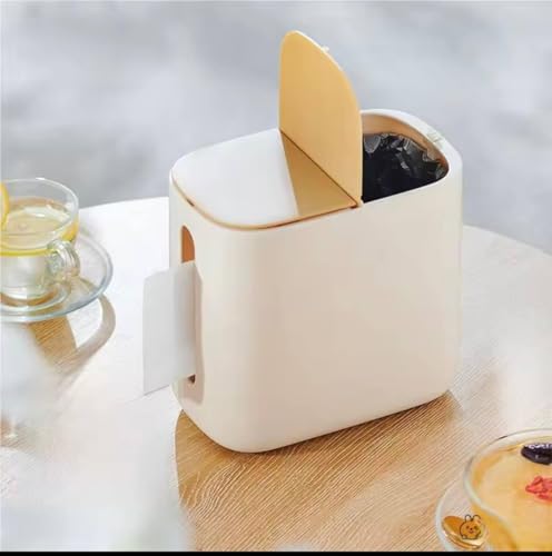 Generic - تخزين صديق للبيئة - سلة ذكية بقسمين تجمع بين حاوية مهملات وتخزين المناديل للاستخدام اليومي العملي في المنزل، أو العمل، أو أثناء السفر