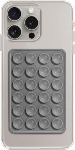 ecosystem - حامل جراب موبايل سيليكون بقاعدة لاصقة وتصميم صديق للبيئة لموبايل آيفون وأندرويد، حامل جراب موبايل لمراية الحمام مع لعبة للاستخدام بدون اليدين وتصوير مقاطع التيك توك والسيلفي (لون رمادي)