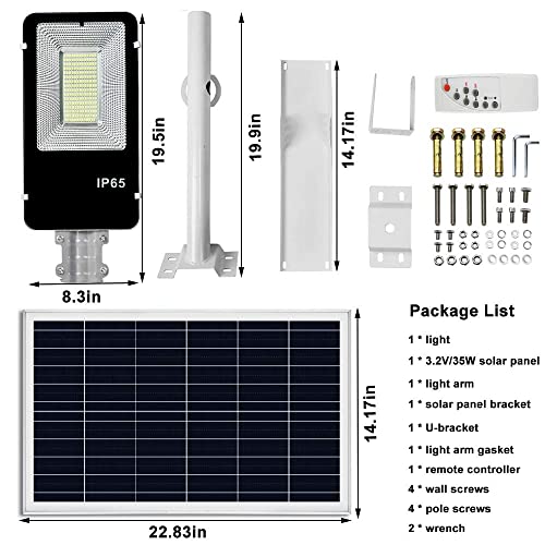 - 【 0 فاتورة كهرباء】--- يمكن لمصباح الشارع الذي يعمل بالطاقة الشمسية بقدرة 100 وات أن يوفر ضوء نهاري أبيض 6500 كلفن لأنه مزود بـ 208 قطعة من خرز ليد عالي الجودة وبطارية 3.2 فولت - 22 أمبير في الساعة (عمر افتراضي يصل إلى 50000 ساعة). درجة الحماية من الأتربة والماء IP65 تجعله يعمل بشكل جيد حتى في الطقس السيئ وعلى مدار العام. إطار من الألومنيوم المصبوب وألواح شمسية عالية الكفاءة تجعلها تبديدًا جيدًا للحرارة ومتينة وأداء إضاءة.