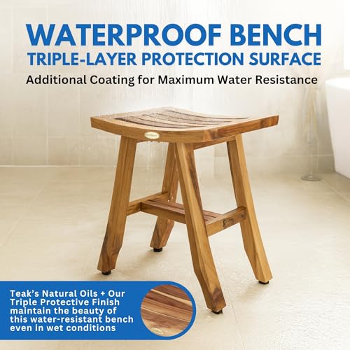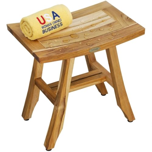 EcoDecors - ايكوديكورز مقعد استحمام، خشب الساج، طبيعي، 18 طول × 12 عرض × 18.5 سم