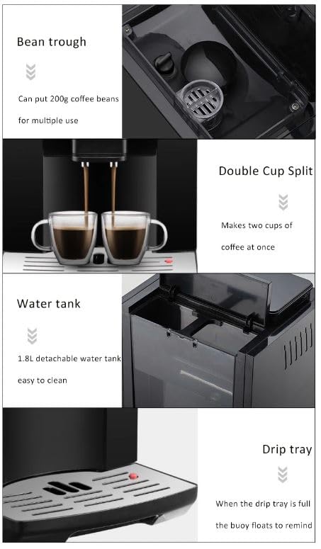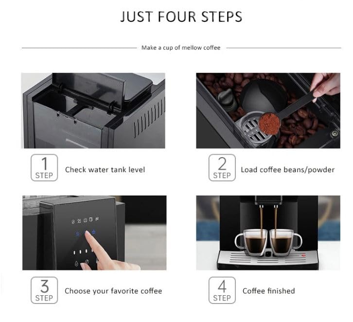 Generic - ماكينة تحضير القهوة الاوتوماتيكية 3 في 1 لتحضير الاسبريسو مطحنة حبوب ورغوة الحليب المنزلية 220 فولت من ايكوفي أسود بلاستيك