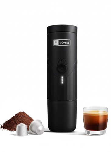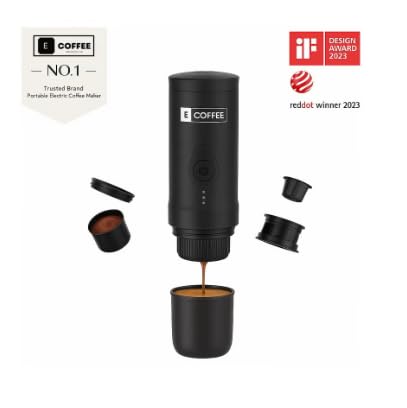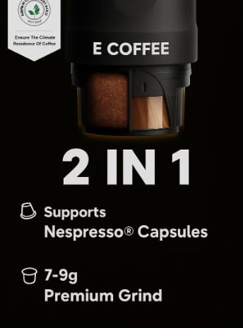 Ecoffee Cup - ماكينة تحضير القهوة كهربائية محمولة نانو، ماكينة إسبريسو للسيارة مع نظام تسخين ذاتي تعمل عبر USB نوع C تدعم البن المطحون وكبسولات ان اس من ايكوفي، لون أسود