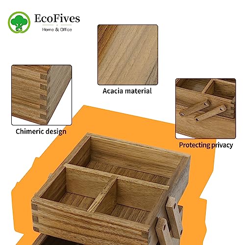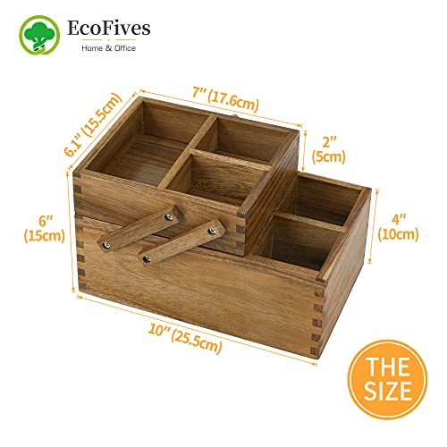 EcoFives - منظم مكتب خشبي كبير قابل للتعديل لسطح المكتب او الطاولة - رف تخزين - لللوازم المكتبية واكسسوارات - اكاسيا