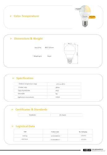 - مصباح ليد 14 وات يوفر إضاءة 1400 لومن من الضوء الدافئ والجذاب