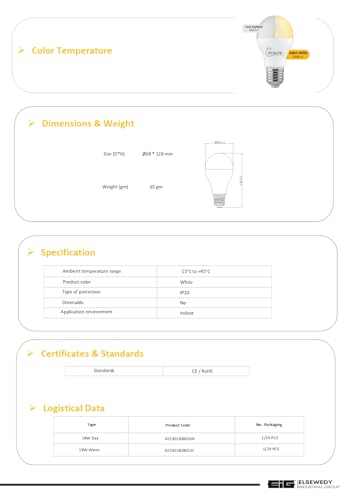 - لمبة ليد بقوة 18 وات تنتج 1800 لومن لإضاءة ناعمة وساطعة