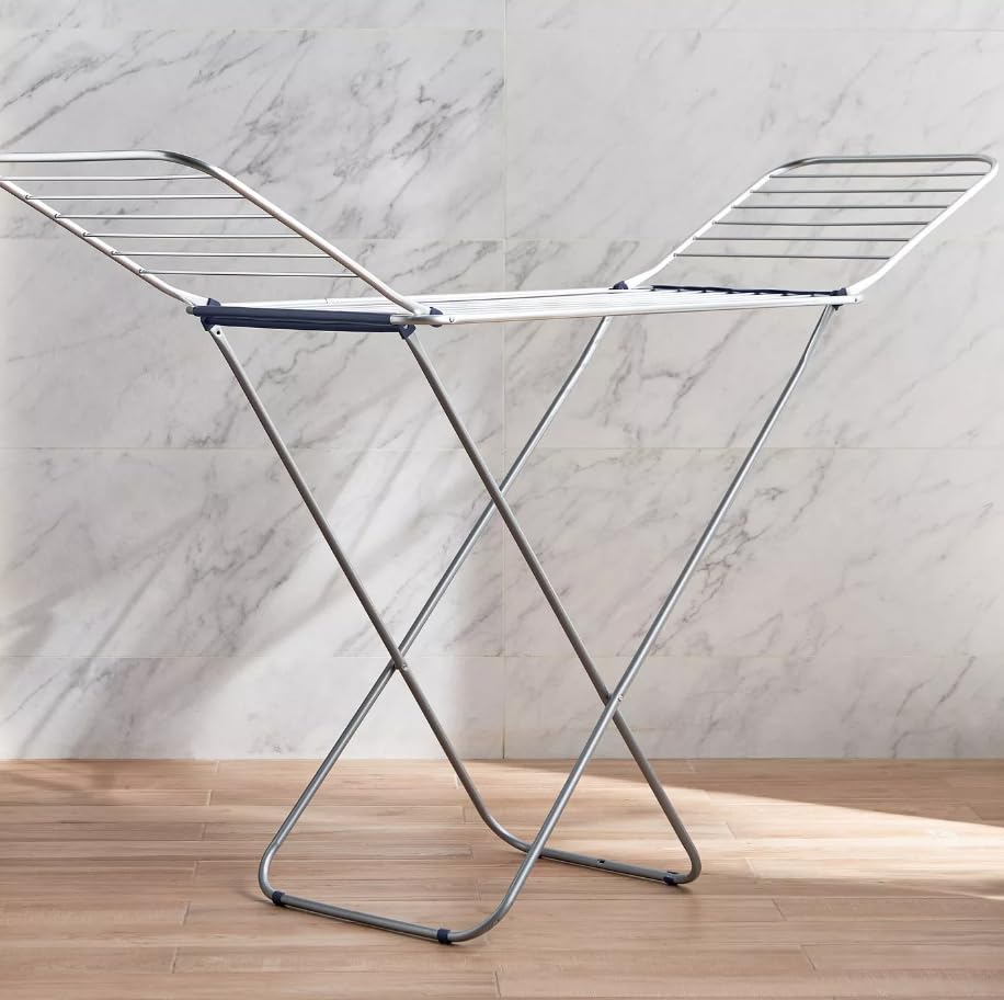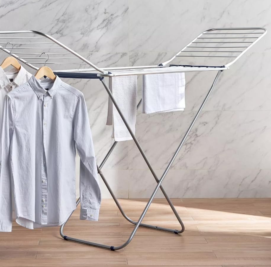 - يمكنك تعليق الملابس المغسولة حديثًا مع القليل من المساعدة من هذا الحامل.