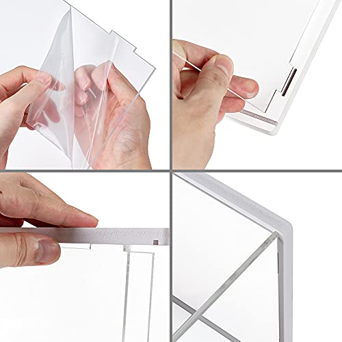 - 【شفافية عالية】مادة اكريليك، قوية ومتينة وشفافة، مع طبقات مزدوجة من الغشاء الواقي على السطح لحماية لوح الأكريليك من الغبار. اجعل تأثير العرض فنيًا وجميلًا، كما نقدم زوجًا من القفازات التي تستعمل مرة واحدة وقطعة قماش نظيفة لمنع الغبار وبصمات الأصابع.