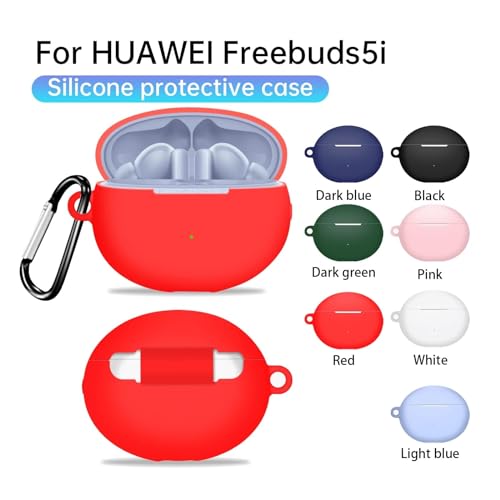 ecosystem - جراب هواوي فري بودز 5 من ايكوسيستم، جراب واقي رفيع للغاية من السيليكون مضاد للصدمات مع حلقة تعليق لسماعات هواوي فري بودز 5i (لون أسود)