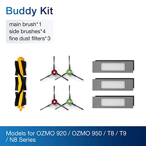 ECOVACS - مجموعة ملحقات ديبوت من ايكوفاكس (فرش وفلاتر بديلة) لموديل اوزمو 920/950/T5/T8/T8 AIVI، جديد، ابيض