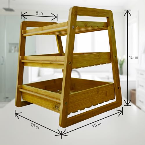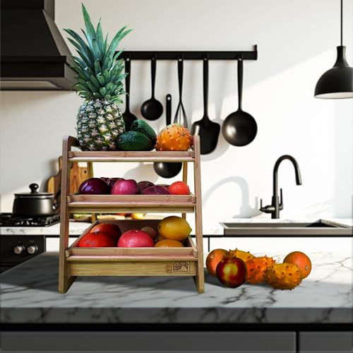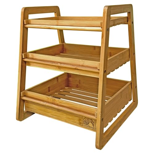 EcoVDoma - سلة فاكهة من 3 طبقات لطاولة المطبخ من ايكوفدوما - منظم سطح الطاولة من الخيزران للفواكه والخضروات والمنتجات والوجبات الخفيفة - رف تخزين من الخشب الطبيعي للمطبخ والحمام والمكتب وكشك البائعين