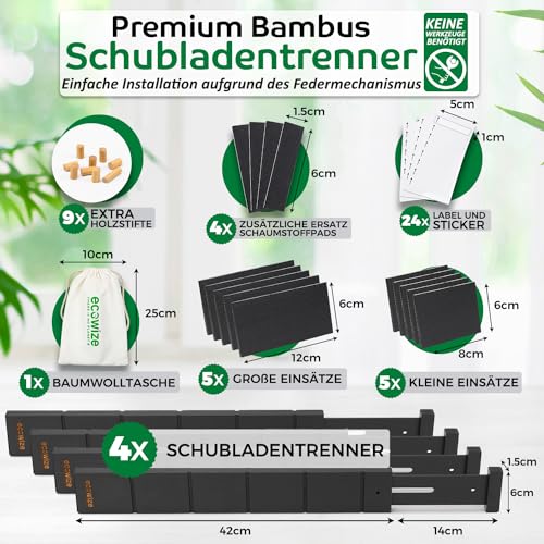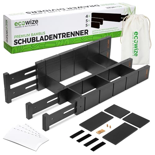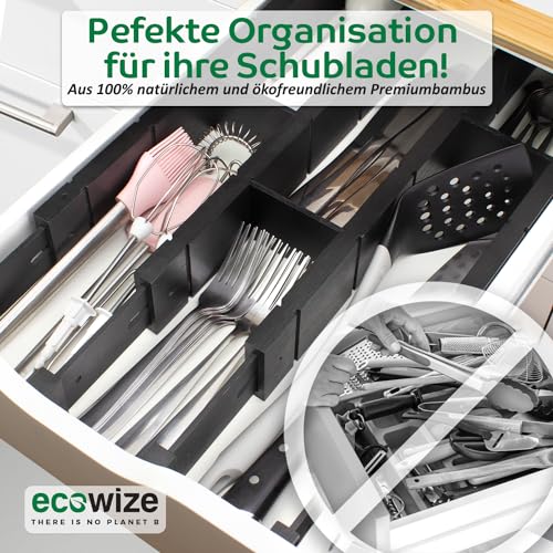 Ecowize - مقسم أدراج من البامبو والأكريليك من ايكووايز (50 سم) - منظم دوار للمطبخ وغرفة النوم والحمام وطاولة الحرف اليدوية