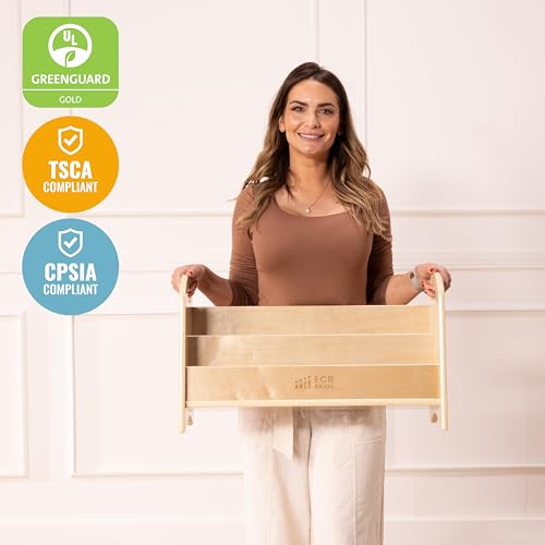 ECR4Kids - رف لعرض الكتب على سطح الطاولة مع مقابض من اي سي ار 4 كيدز، رف كتب للمبتدئين، طبيعي، رفين