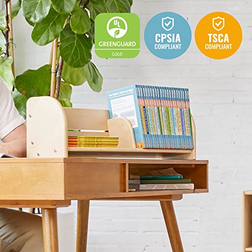 - أمان معتمد: رف الكتب حاصل على شهادة جرين جارد [جولد] لمستويات منخفضة من المركبات العضوية المتطايرة ومتوافقة مع معايير قانون مراقبة المواد السامة وقانون تحسين سلامة المنتجات الاستهلاكية، ويتميز بحواف وجوانب دائرية.