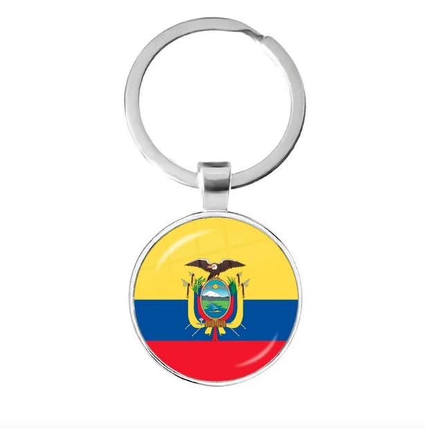 Generic - سلسلة مفاتيح بتصميم علم دولة إكوادور الوطني الثلاثي الألوان، حلقة مفاتيح معدنية فضية تذكارية لمشجعي فريق كرة القدم