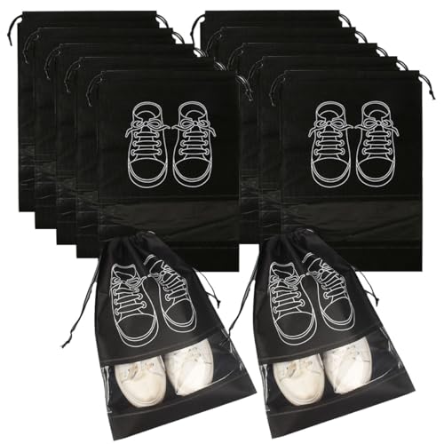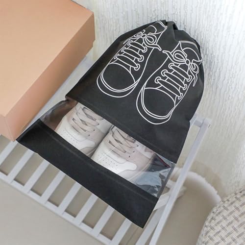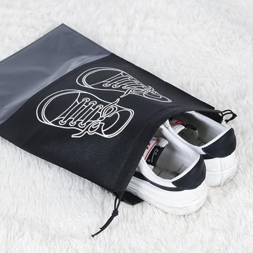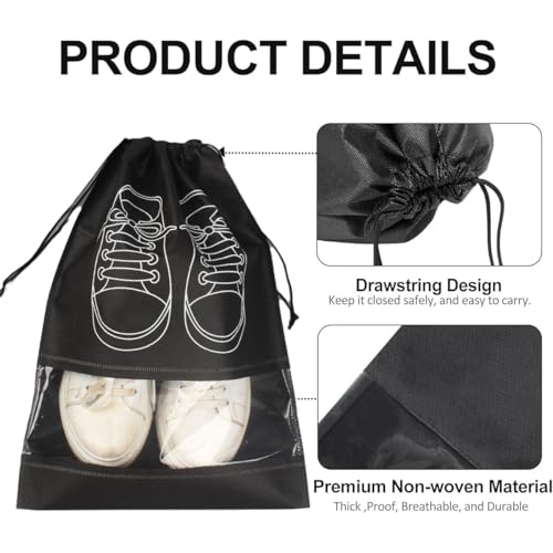 ECVV - اكياس تخزين احذية مقاومة للماء مع نافذة شفافة - سعة كبيرة (44 × 32 سم)، قماش متين غير منسوج للسفر وصالة الالعاب الرياضية وتنظيم الاحذية الرياضية (اسود)