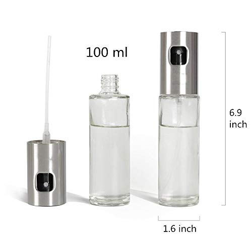 Generic - بخاخة زيت زيتون للطبخ، زجاجة زيت شفافة سعة 100 مل، بخاخة زيت للخل مناسبة للشواء وتحضير السلطة والخبز والتحميص والقلي من اي سي في في، طقم من قطعتين
