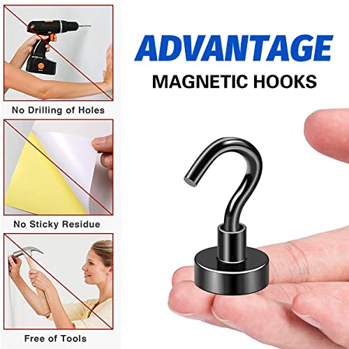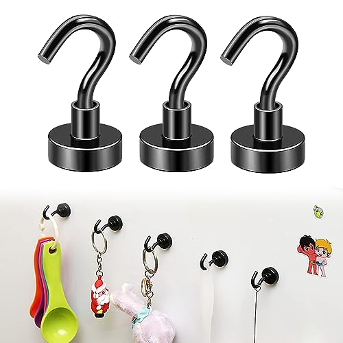 ECVV - 3 قطع من خطافات مغناطيسية متعددة الاستخدامات مع 22 باوند، خطافات مغناطيسية نيوديميوم ارضية نادرة للتعليق، خطافات مغناطيسية على شكل حرف S للثلاجة والشواية والمطبخ والحمام