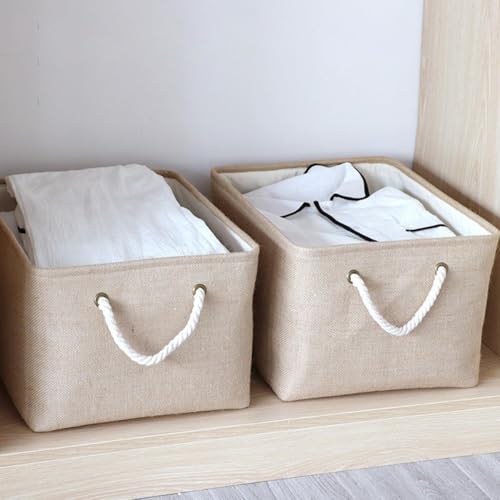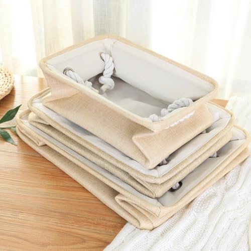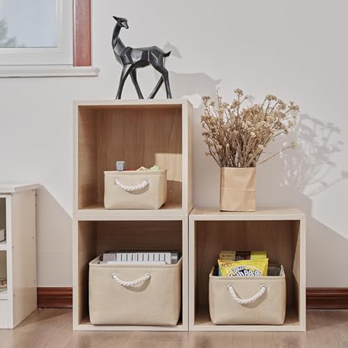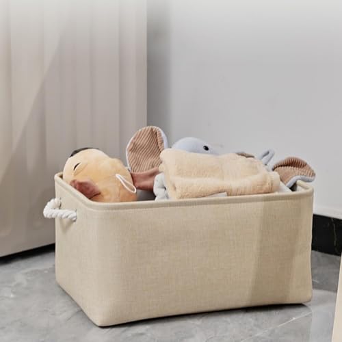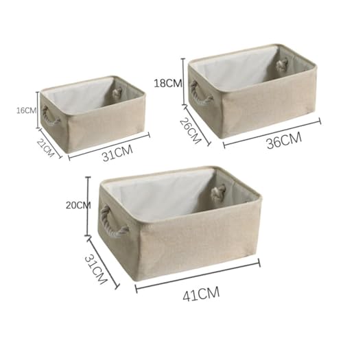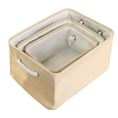 ECVV - سلة تخزين مستطيلة قابلة للطي مع مقابض، سلة تخزين لتنظيم الرفوف والخزانات والملابس والالعاب من 3 قطع (بيج)