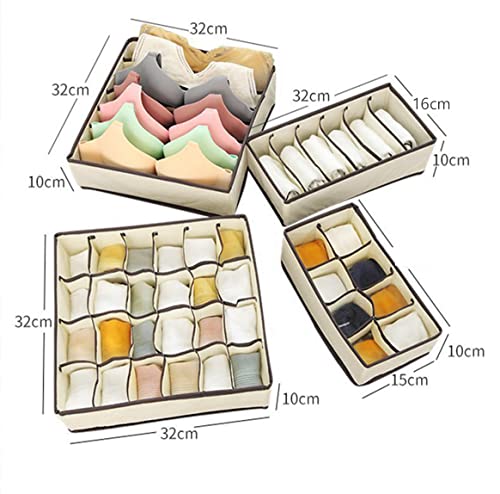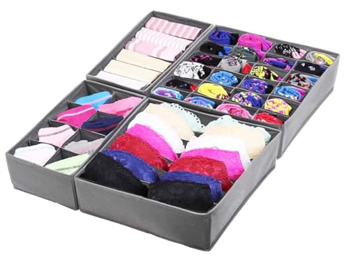 ECVV - منظم تخزين الملابس الداخلية مكون من 4 قطع من إي سي في في، صناديق تخزين قابلة للطي لتنظيم خزانة الملابس وحمالات الصدر والملابس الداخلية والجوارب والملابس الداخلية (رمادي)
