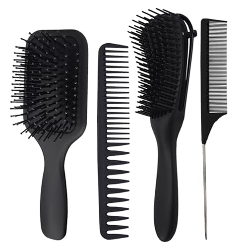 ECVV - مجموعة من 4 قطع من مشط الشعر وفرشاة فك تشابك الشعر، امشاط تصفيف الشعر للرجال والنساء، فرشاة مجداف لفك تشابك الشعر، مشط باسنان عريضة، مشط ذيل