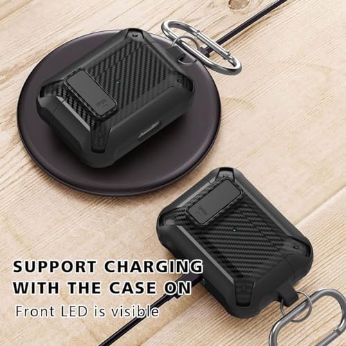 - [تصميم قفل الأمان] حافظة متينة للغاية مع قفل أمان، ضعها على الفور، لا تقلق بشأن سقوط سماعات الأذن، فهي تمنع الحافظة من الفتح وتحميها من الخدوش والسقوط.