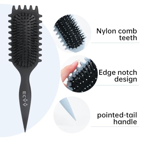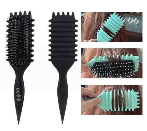 ECVV - اي سي في في فرشاة تصفيف الشعر باونس كيرل ديفاين - فرشاة شعر مجعد فاخرة، لفك تشابك الشعر الرطب والجاف، اداة اساسية لتشكيل وتجعيد الشعر (اللون: اسود)