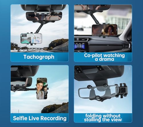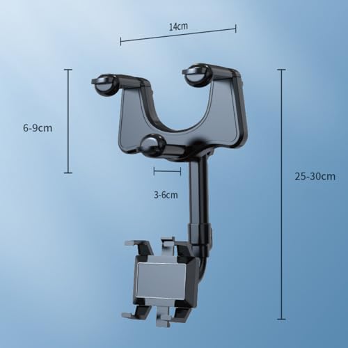 - [نسخة مطورة من حامل الهاتف الدوار 360 درجة] يتميز حامل الهاتف بمرآة الرؤية الخلفية بتصميم دوران 360 درجة، يمكنك تدوير حامل الهاتف لمرآة الرؤية الخلفية للسيارة إلى أي زاوية حتى تتمكن من الحصول على أفضل منظور. تصميم الدوران يجعل من السهل طيه، وسهل التلسكوب، ويمكن قياس طول الذراع 0-5 سم، مما لا يحجب رؤيتك أثناء الاستخدام.