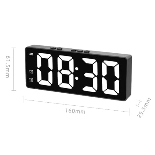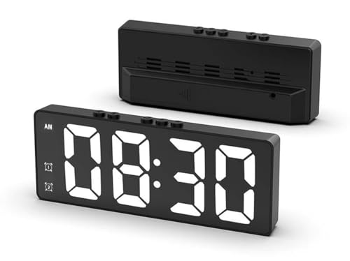 ECVV - ساعة منبه رقمية، ساعة إلكترونية حديثة بشاشة ال اي دي مراية، مزودة بتحكم صوتي ومنبه مزدوج، تعمل بالبطاريات أو عبر كابل USB لغرف النوم والمعيشة والمكاتب من ECVV، أسود