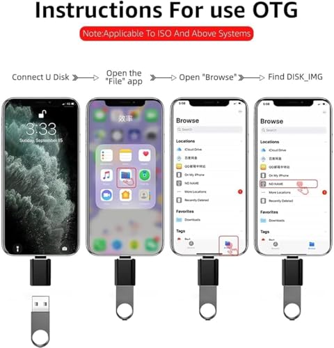 - 【نصائح】 يرجى عدم القلق إذا لم يكن هناك أي عرض عند توصيل قرص U أو الكاميرا. ما عليك سوى العثور على "الملفات" على سطح المكتب والنقر على "تصفح" ثم يمكنك رؤية قرص U على جهاز ايفون الخاص بك.