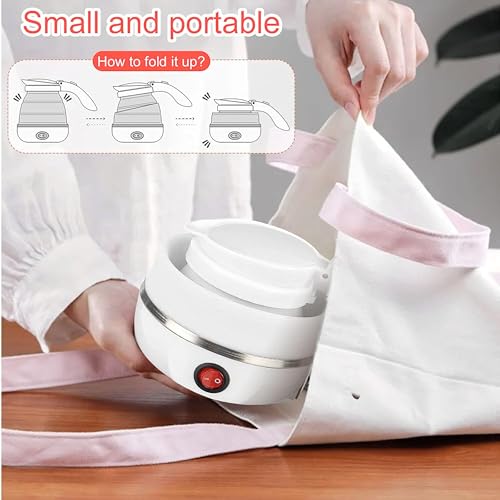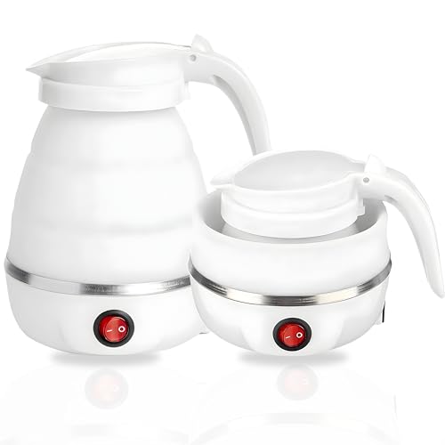 ECVV - غلاية مياه كهربائية من السيليكون قابلة للطي للسفر من اي سي في في- غلاية كهربائية صغيرة محمولة (أبيض)