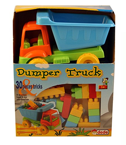 Generic - لعبة شاحنة قلابة مع مكعبات على شكل طوب - 30 قطعة، بلاستيك